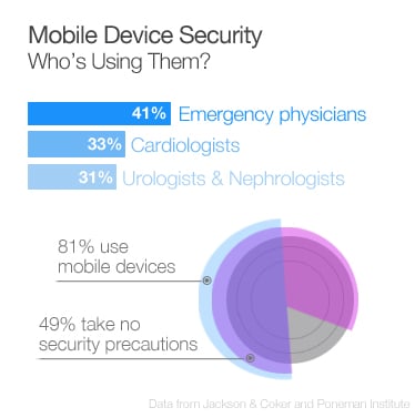 The infamous Ponemon Institute study on data breaches reports that 81 percent of healthcare organizations use mobile devices to collect, store and transmit patient data. Yet 49 percent take no security precautions to ensure those devices and patient data are protected, and less than 24 percent use encryption.